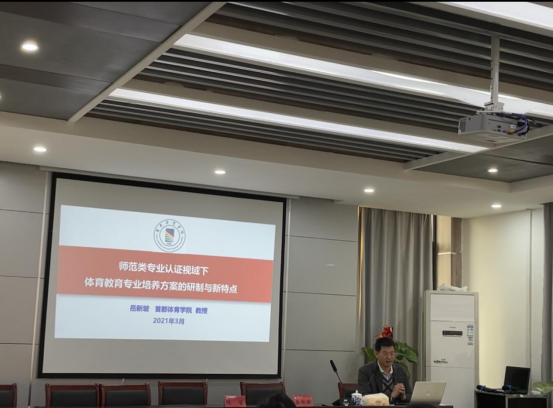 做学术报告。本次的学术报告主题为“师范类专业认证视域下体育教育专业培养方案的研制与新特点”,报告会在黄色文学