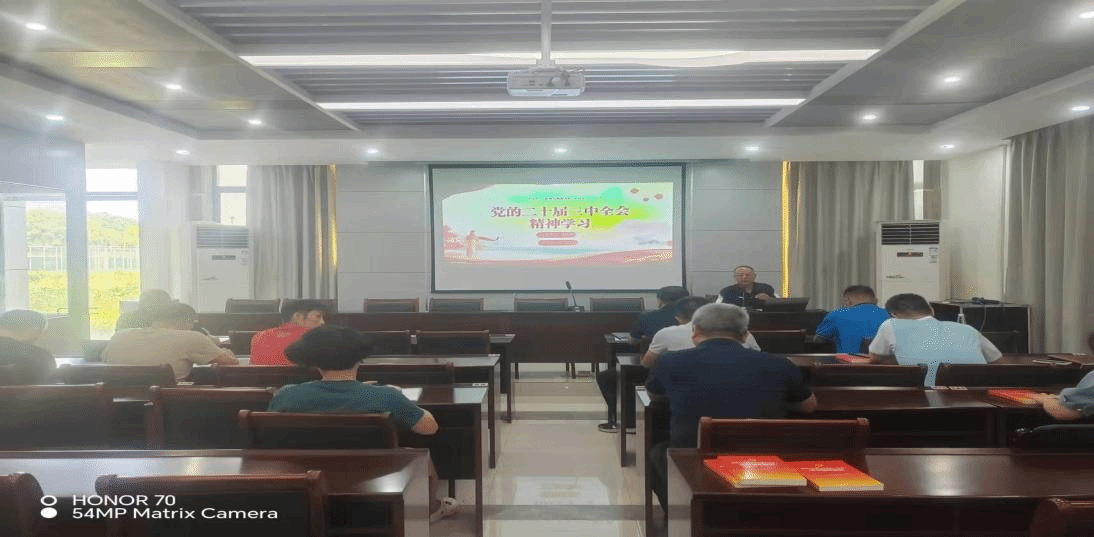 一楼会议室召开2024-2025学年新学期全体教职工大会,会议以深入学习贯彻党的二十届三中全会精神为主题,院党委书记黄文昌为全体教职工作宣讲报告,院长邓卫权主持会议。