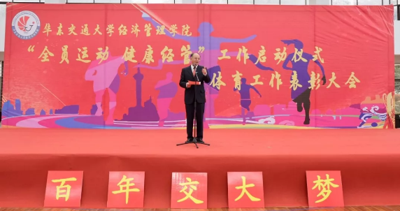 各年级各专业一共组建了184支兴趣运动队及竞赛运动队,以全新的方式开展“全院运动、健康经管”工作,值得全校学习。万明要求,一要积极行动、全员参与,老师要起到带头作用,鼓励、监督学生;二要持之以恒、养成习惯,同学们应从从容容、坚持不懈地运动;三要向上向善、塑造精神,同学们应秉承“日新其德、止于至善”的校训,传承团结拼搏、奋发向上的体育精神。