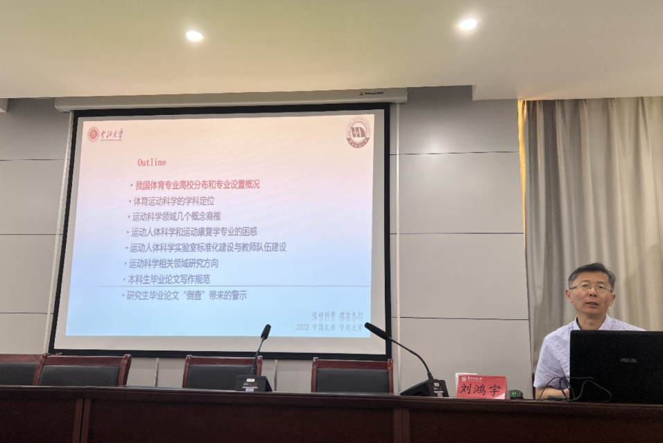 刘鸿宇教授首先回顾了我国体育学学科发展的基本情况,介绍了我国体育专业高校分布和专业设置概况、体育运动科学的学科定位、运动人体科学和运动康复学专业的发展现状。随后,刘鸿宇教授着重讲解了学位论文与学术论文的区别、论文结构、研究生论文的撰写方法等,为黄色文学